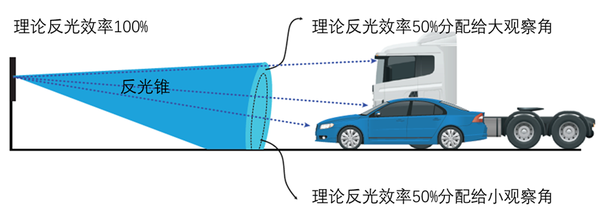 影响观察角和入射角的因素有很多,普通的截角棱镜技术反光材料,因为反光效率只有32%,所以分配给大角度的光线较少。
